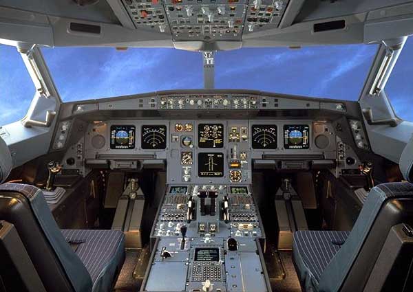 Controles de vuelo: Los componentes necesarios para el control de vuelo de los aviones modernos constan de varios sistemas que se manejan desde la cabina de pilotos mediante una palanca de mando, con o sin volante, los pedales de dirección y un conjunto de instrumentos que proporcionan la información necesaria para su uso.